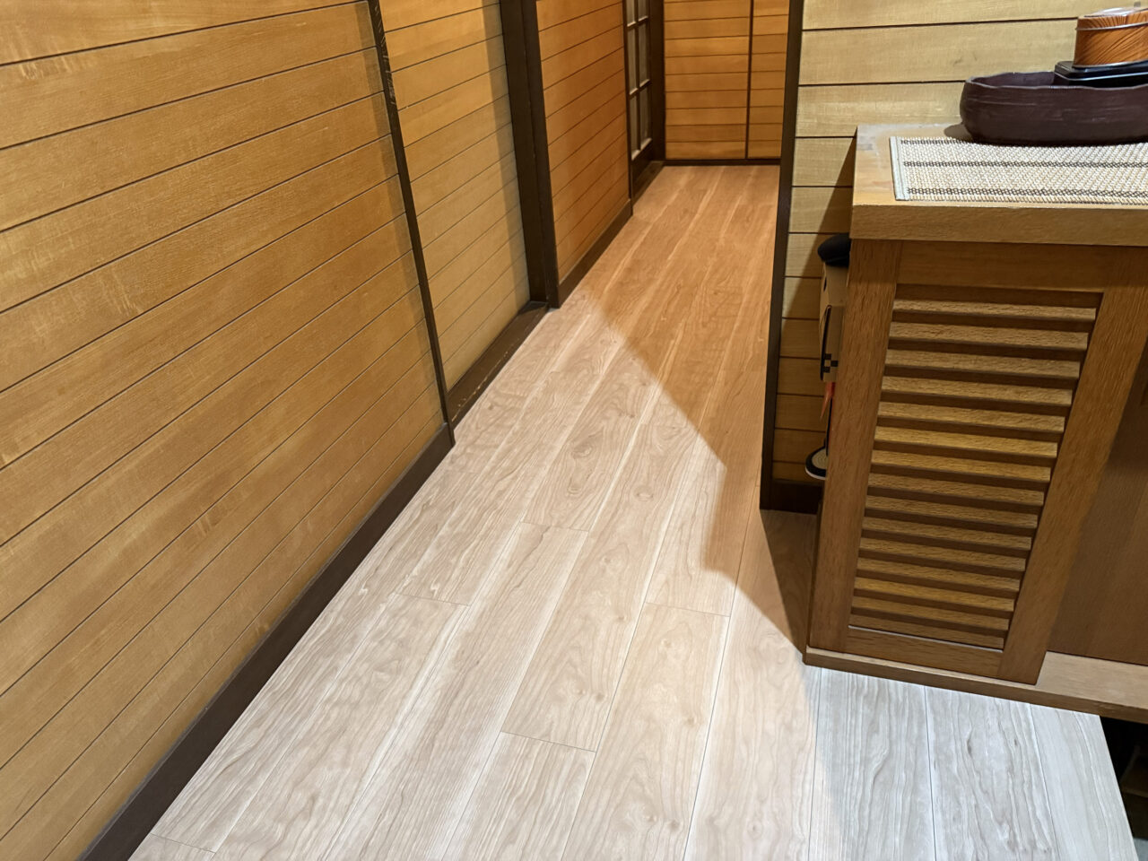フローリング施工・既設床歪み修繕の上1.5mmフローリング上張り
